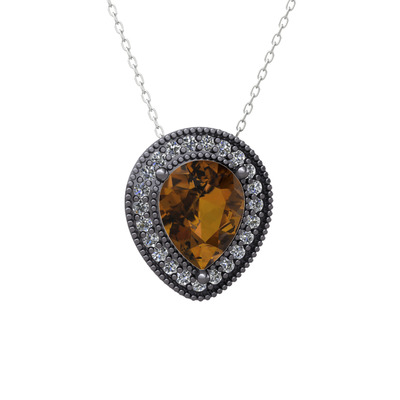 Dumanlı kuvars ve pırlanta 925 ayar siyah rodyum kaplama gümüş kolye (0.264 karat, 40 cm beyaz altın rolo zincir)