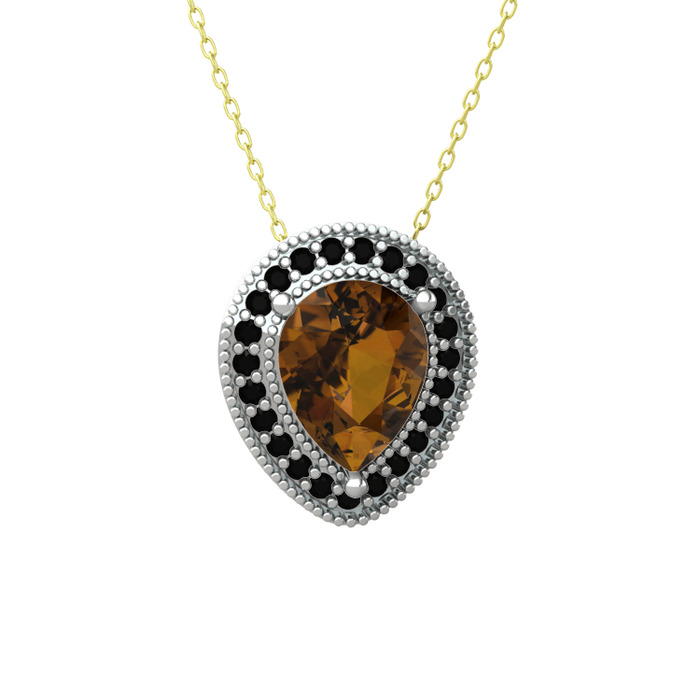 Dumanlı kuvars ve siyah zirkon 18 ayar beyaz altın kolye (40 cm altın rolo zincir)