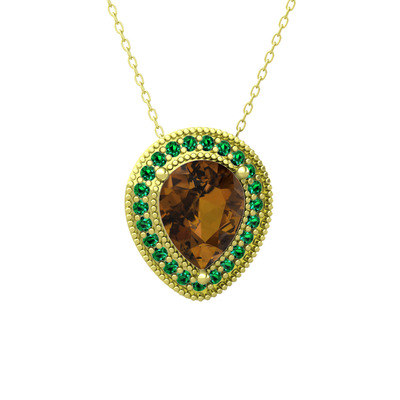 Dumanlı kuvars ve yeşil kuvars 8 ayar altın kolye (40 cm gümüş rolo zincir)