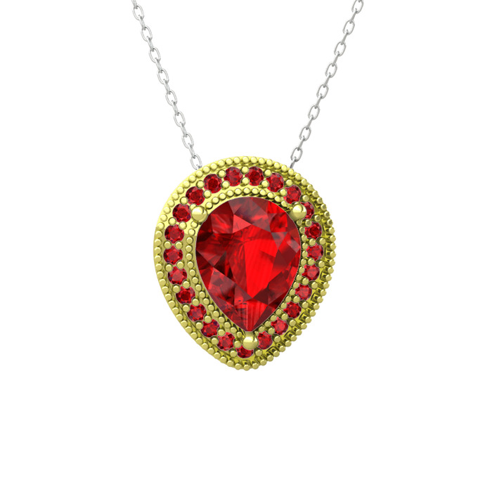 Garnet 925 ayar altın kaplama gümüş kolye (40 cm beyaz altın rolo zincir)