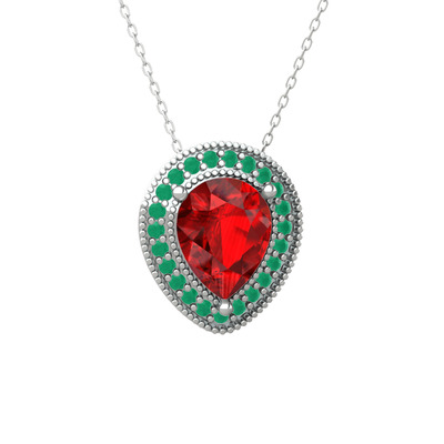Garnet ve kök zümrüt 8 ayar beyaz altın kolye (40 cm beyaz altın rolo zincir)