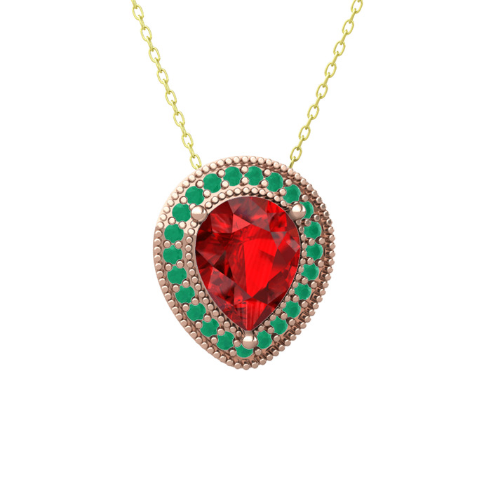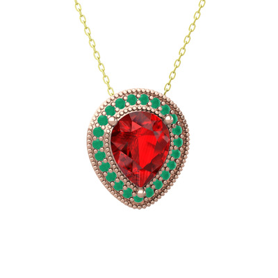 Garnet ve kök zümrüt 8 ayar rose altın kolye (40 cm altın rolo zincir)