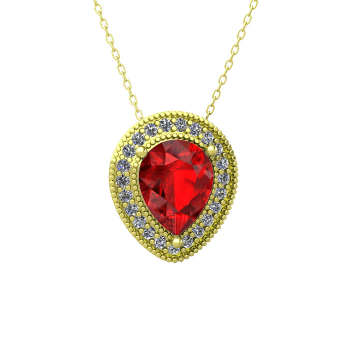 Garnet ve pırlanta 18 ayar altın kolye (0.264 karat, 40 cm gümüş rolo zincir)