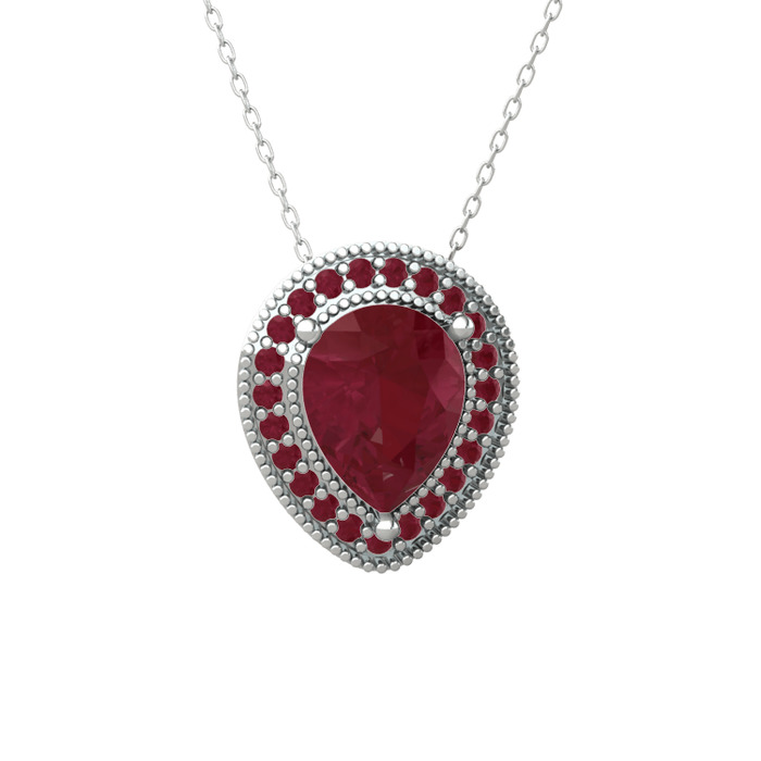 Kök yakut 8 ayar beyaz altın kolye (40 cm beyaz altın rolo zincir)