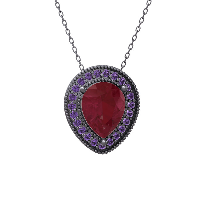 Kök yakut ve ametist 925 ayar siyah rodyum kaplama gümüş kolye (40 cm gümüş rolo zincir)