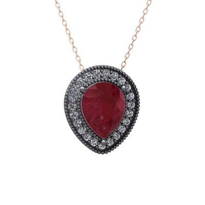 Kök yakut ve beyaz zirkon 925 ayar siyah rodyum kaplama gümüş kolye (40 cm rose altın rolo zincir)