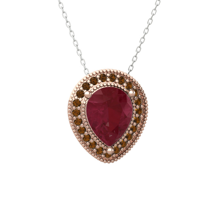 Kök yakut ve dumanlı kuvars 18 ayar rose altın kolye (40 cm beyaz altın rolo zincir)