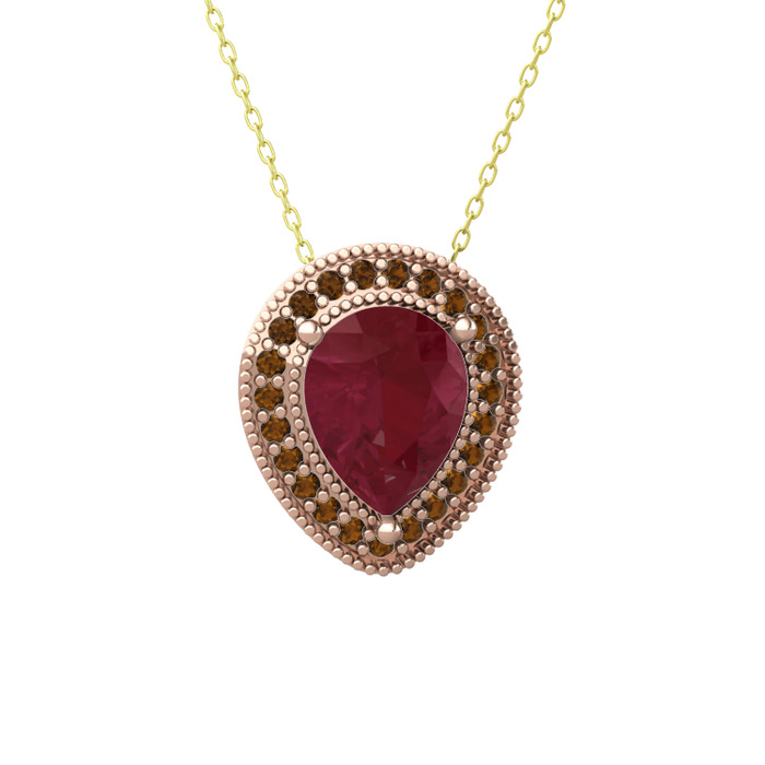 Kök yakut ve dumanlı kuvars 925 ayar rose altın kaplama gümüş kolye (40 cm altın rolo zincir)