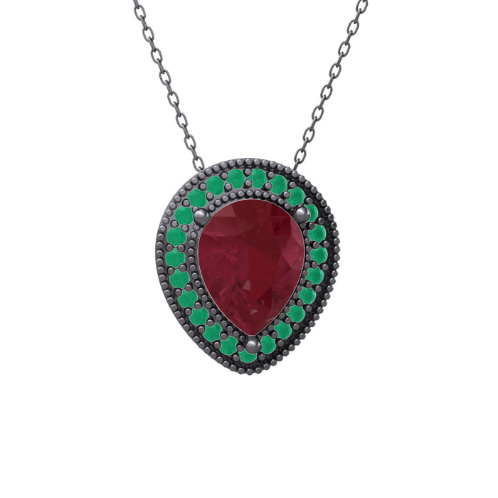 Kök yakut ve kök zümrüt 925 ayar siyah rodyum kaplama gümüş kolye (40 cm gümüş rolo zincir)