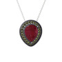 Kök yakut ve peridot 925 ayar siyah rodyum kaplama gümüş kolye (40 cm beyaz altın rolo zincir)