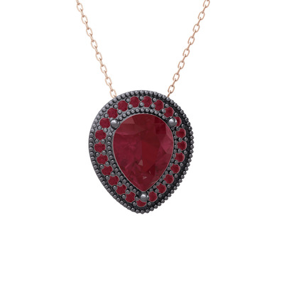 Kök yakut 925 ayar siyah rodyum kaplama gümüş kolye (40 cm rose altın rolo zincir)
