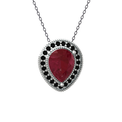 Kök yakut ve siyah zirkon 14 ayar beyaz altın kolye (40 cm gümüş rolo zincir)
