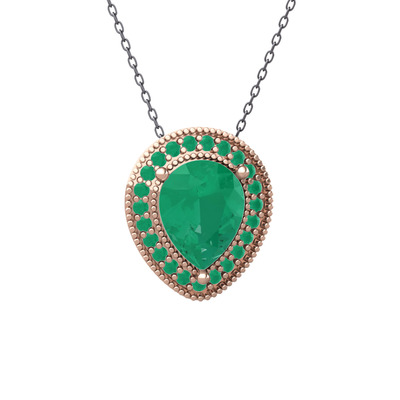 Kök zümrüt 18 ayar rose altın kolye (40 cm gümüş rolo zincir)