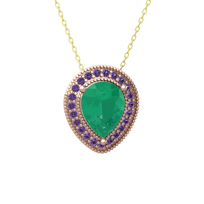 Kök zümrüt ve ametist 8 ayar rose altın kolye (40 cm altın rolo zincir)