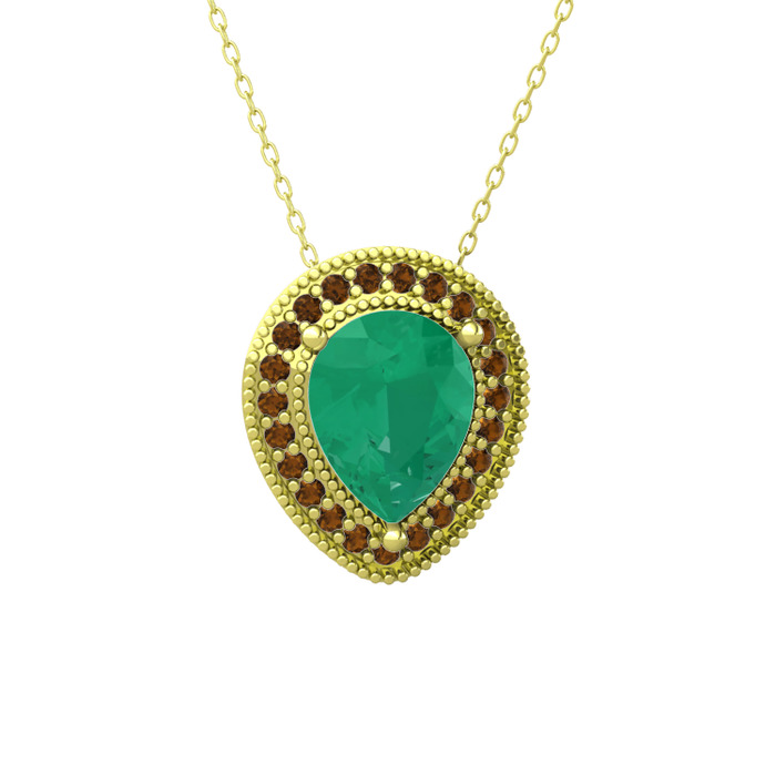 Kök zümrüt ve dumanlı kuvars 925 ayar altın kaplama gümüş kolye (40 cm altın rolo zincir)