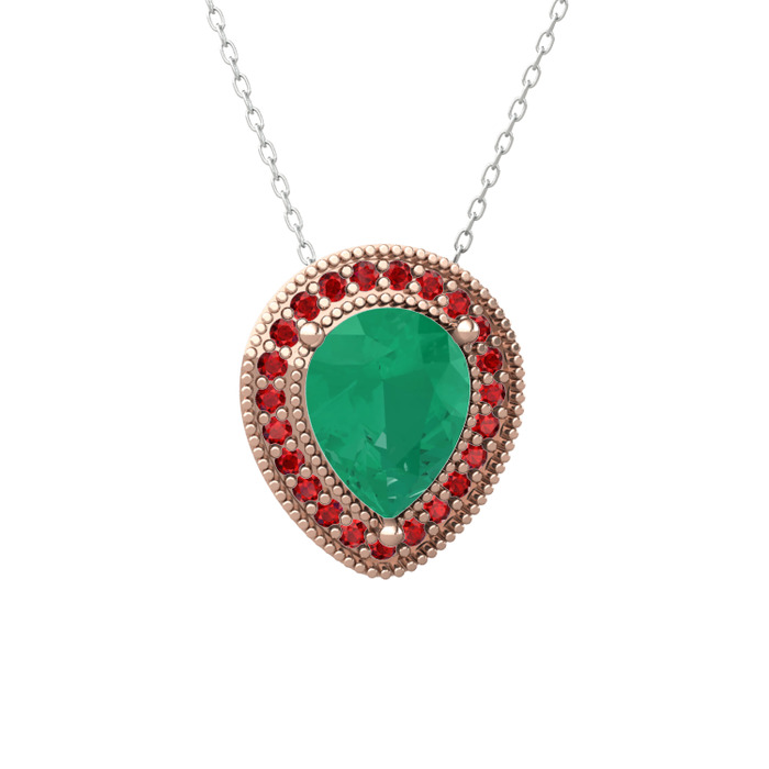 Kök zümrüt ve garnet 8 ayar rose altın kolye (40 cm beyaz altın rolo zincir)