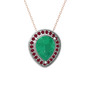 Kök zümrüt ve kök yakut 14 ayar beyaz altın kolye (40 cm rose altın rolo zincir)