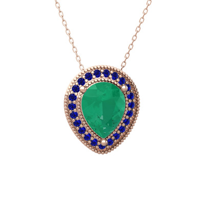 Kök zümrüt ve lab safir 8 ayar rose altın kolye (40 cm rose altın rolo zincir)