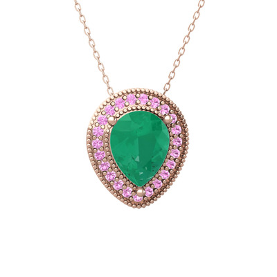 Kök zümrüt ve pembe kuvars 925 ayar rose altın kaplama gümüş kolye (40 cm rose altın rolo zincir)