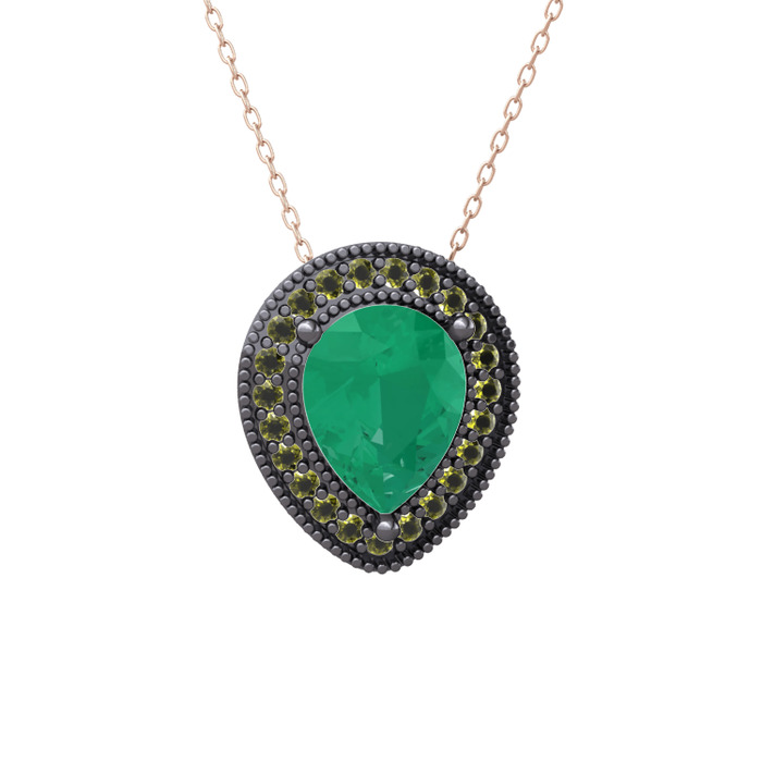 Kök zümrüt ve peridot 925 ayar siyah rodyum kaplama gümüş kolye (40 cm gümüş rolo zincir)