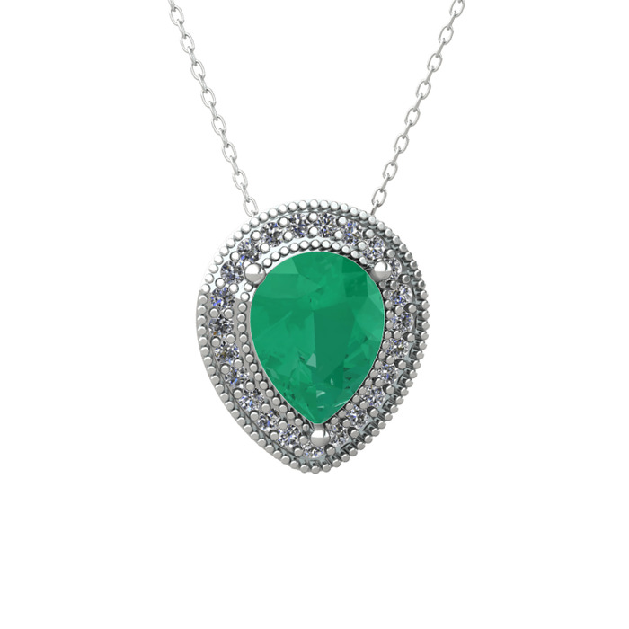 Kök zümrüt ve swarovski 18 ayar beyaz altın kolye (40 cm beyaz altın rolo zincir)