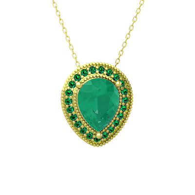 Kök zümrüt ve yeşil kuvars 8 ayar altın kolye (40 cm altın rolo zincir)