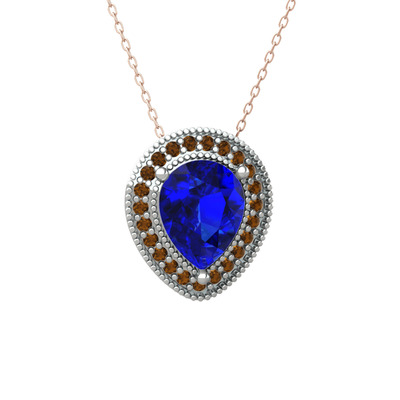 Lab safir ve dumanlı kuvars 925 ayar gümüş kolye (40 cm rose altın rolo zincir)