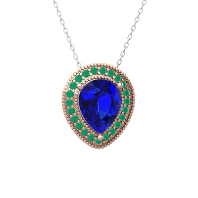 Lab safir ve kök zümrüt 925 ayar rose altın kaplama gümüş kolye (40 cm gümüş rolo zincir)