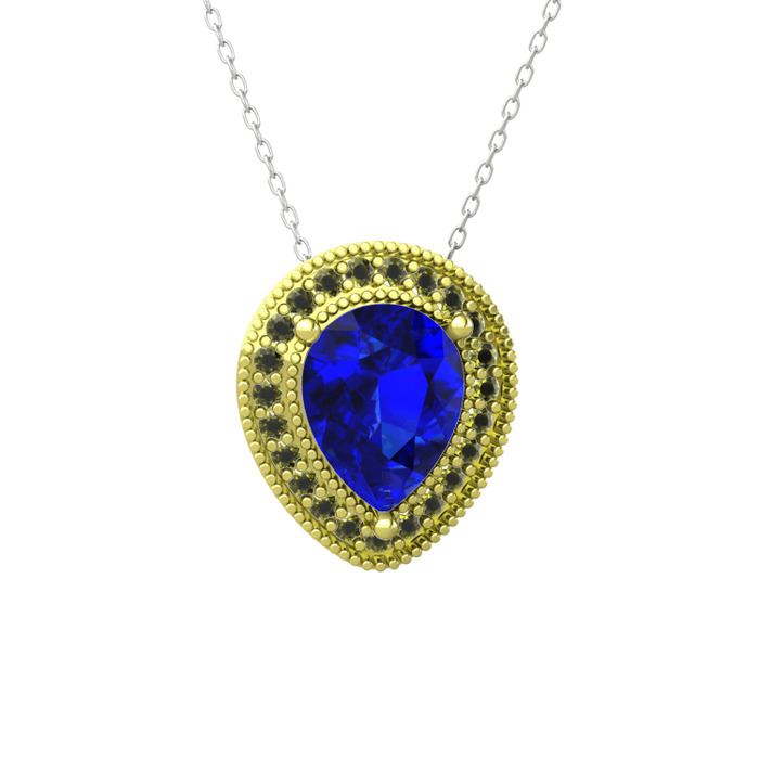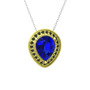 Lab safir ve peridot 18 ayar altın kolye (40 cm beyaz altın rolo zincir)