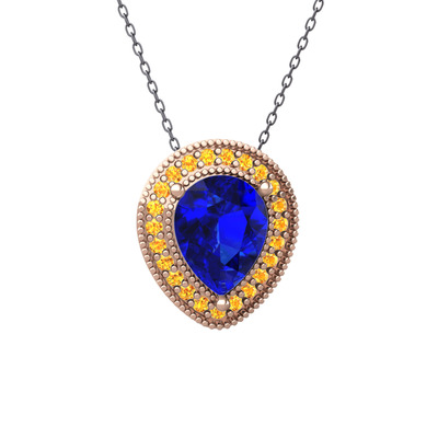 Lab safir ve sitrin 14 ayar rose altın kolye (40 cm gümüş rolo zincir)
