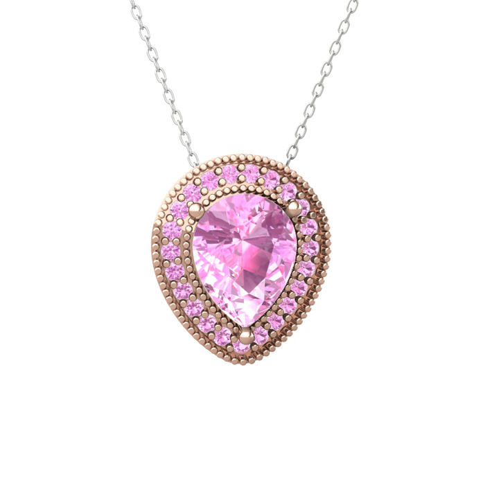 Pembe kuvars 14 ayar rose altın kolye (40 cm beyaz altın rolo zincir)