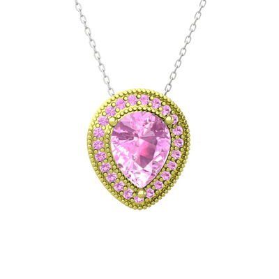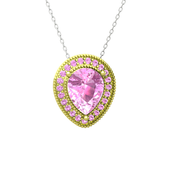 Pembe kuvars 18 ayar altın kolye (40 cm gümüş rolo zincir)