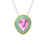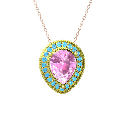 Pembe kuvars ve akuamarin 18 ayar altın kolye (40 cm gümüş rolo zincir)