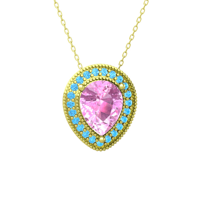 Pembe kuvars ve akuamarin 8 ayar altın kolye (40 cm altın rolo zincir)