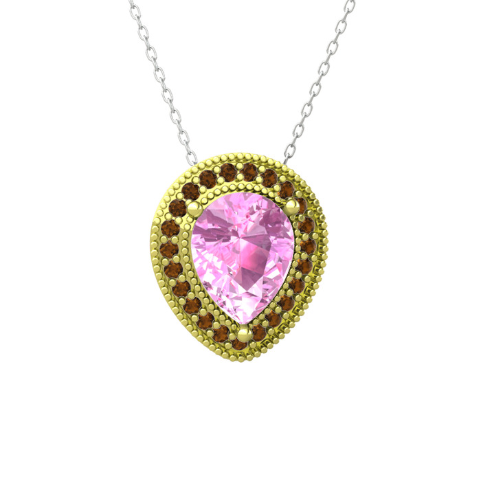Pembe kuvars ve dumanlı kuvars 8 ayar altın kolye (40 cm beyaz altın rolo zincir)