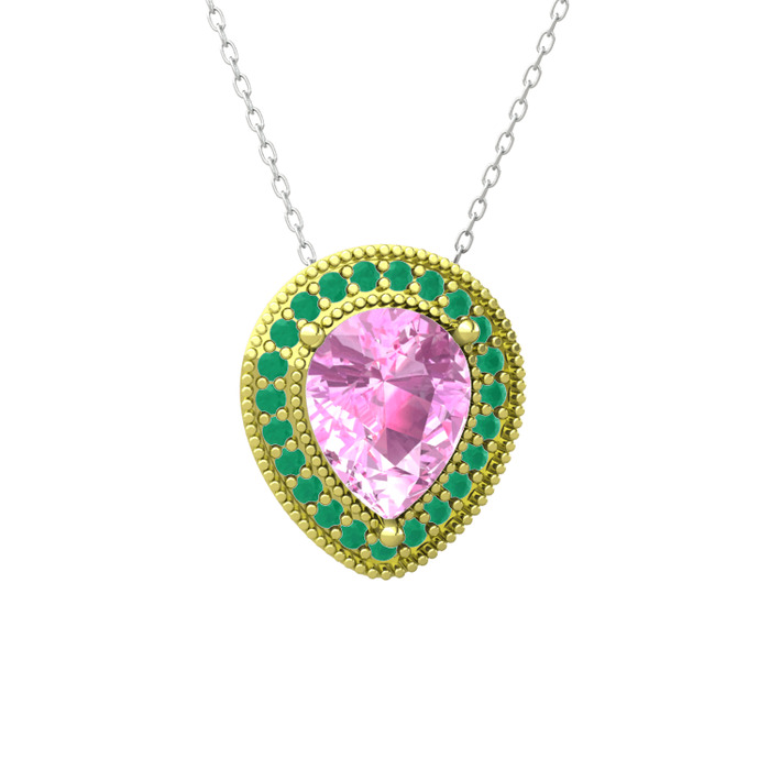 Pembe kuvars ve kök zümrüt 8 ayar altın kolye (40 cm beyaz altın rolo zincir)