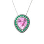 Pembe kuvars ve kök zümrüt 8 ayar beyaz altın kolye (40 cm gümüş rolo zincir)