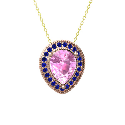 Pembe kuvars ve lab safir 18 ayar rose altın kolye (40 cm gümüş rolo zincir)