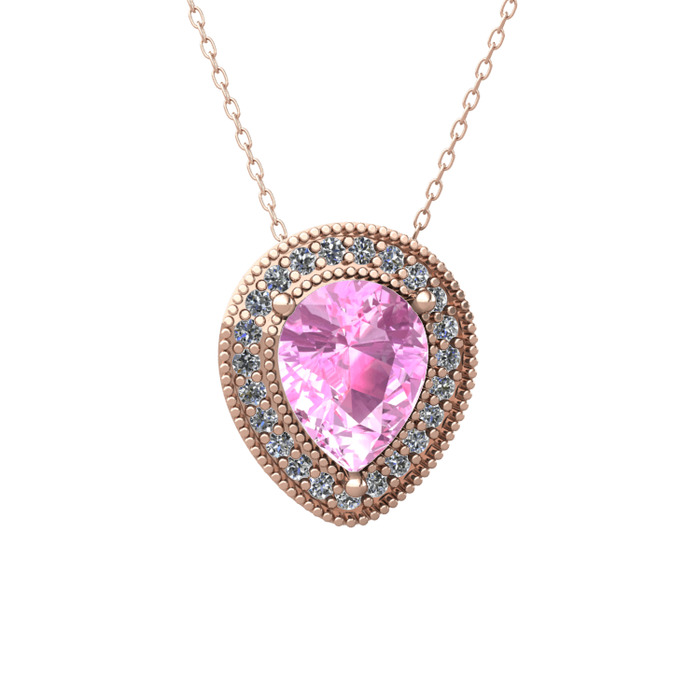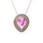 Pembe kuvars ve pırlanta 18 ayar rose altın kolye (0.264 karat, 40 cm rose altın rolo zincir)