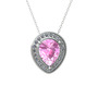 Pembe kuvars ve pırlanta 925 ayar gümüş kolye (0.264 karat, 40 cm beyaz altın rolo zincir)