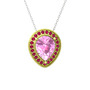 Pembe kuvars ve rodolit garnet 8 ayar altın kolye (40 cm beyaz altın rolo zincir)