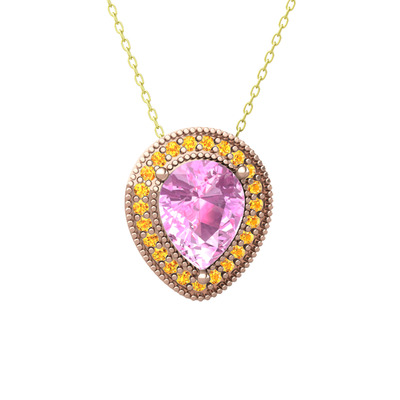 Pembe kuvars ve sitrin 925 ayar rose altın kaplama gümüş kolye (40 cm gümüş rolo zincir)
