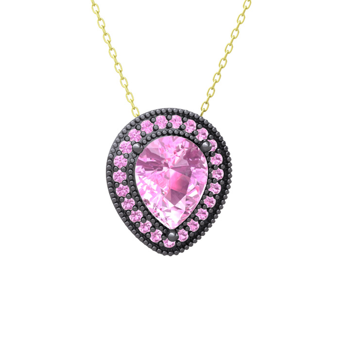 Pembe kuvars 925 ayar siyah rodyum kaplama gümüş kolye (40 cm gümüş rolo zincir)