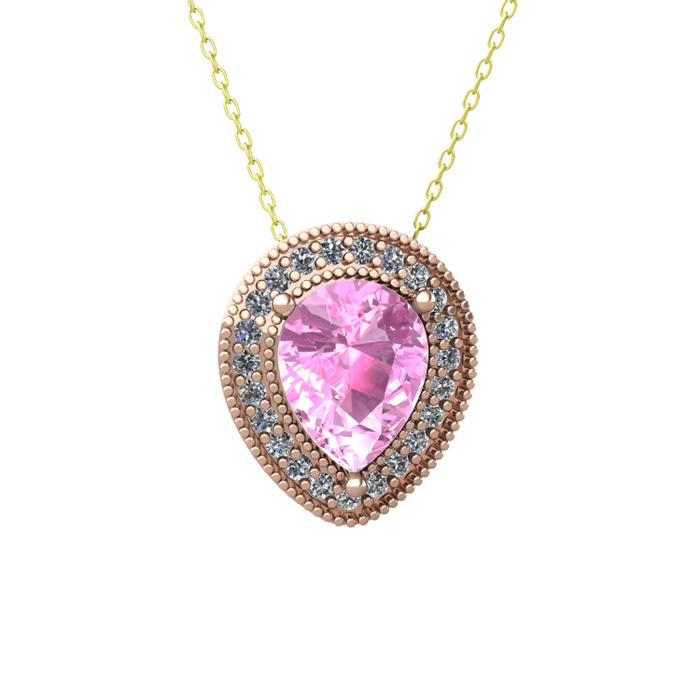 Pembe kuvars ve swarovski 925 ayar rose altın kaplama gümüş kolye (40 cm altın rolo zincir)