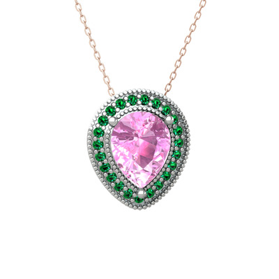 Pembe kuvars ve yeşil kuvars 925 ayar gümüş kolye (40 cm rose altın rolo zincir)