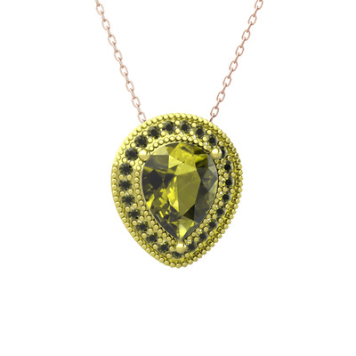 Peridot 14 ayar altın kolye (40 cm rose altın rolo zincir)
