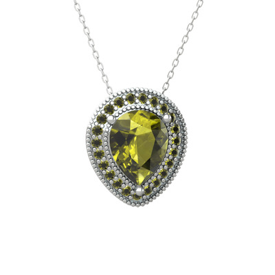 Peridot 18 ayar beyaz altın kolye (40 cm beyaz altın rolo zincir)