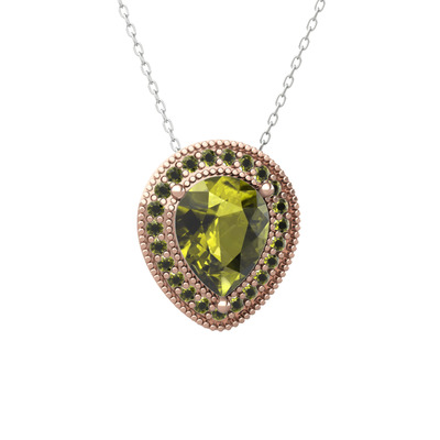 Peridot 8 ayar rose altın kolye (40 cm gümüş rolo zincir)