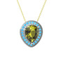 Peridot ve akuamarin 925 ayar gümüş kolye (40 cm altın rolo zincir)