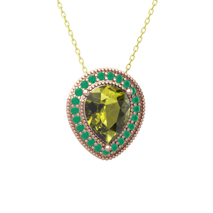 Peridot ve kök zümrüt 18 ayar rose altın kolye (40 cm altın rolo zincir)